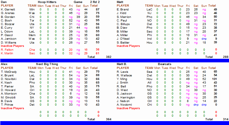 [ Home ] [ Rules ] [ Schedule ] [ Draft ] [ Rosters ] [ Standings ] [ Boxscores ] [ Transactions ] [ League History ]