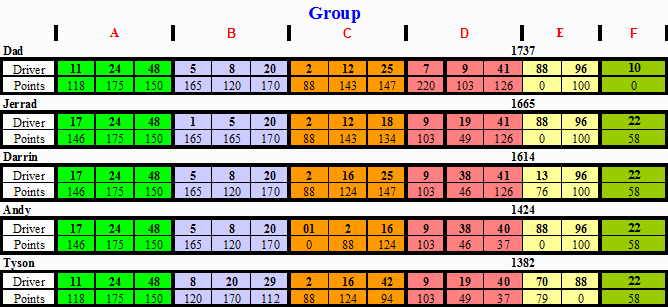 | 2 | Jerrad | 1,665 | -72 |